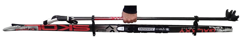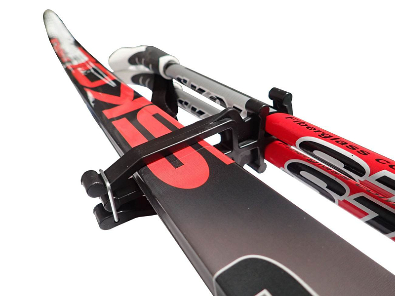 Plastový nosič lyží a hůlek – 1 pár. Vhodný pro běžecké lyže a případně užší dětské sjezdové lyže.