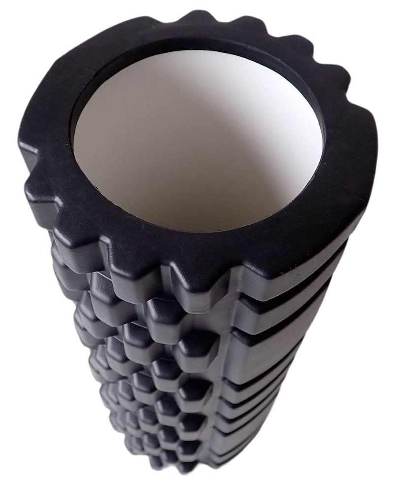 Masážní válec – roller ČERNÝ, je moderní pomůcka pro účinnou masáž těla a také pro nácvik koordinace pohybů. Válec je vyrobený z odolné, nárazuvzdorné polyetylenové hmoty se ztužujícím polypropylenovým válcem uprostřed. Na válci je pak navařena vrstva tuhého pěnového polyetylenu. Povrchová struktura s výstupky a prohlubněmi je účinný masážní prostředek a při cvičení masíruje tělo, zajišťuje hlubší a přesnější svalovou stimulaci. Napomáhá tím uvolňování svalového napětí a k hloubkové masáži. Tím napomáhá odbourávání bolesti zad, kloubů a používáním. Používáním válce dochází také ke zpevňování postavy. Válec je také určený ke zlepšování stability a koordinaci pohybů, urychlení zotavení po tréningu, snižuje riziko zranění, zvyšuje průtok krve v těle a urychluje léčbu poranění. Používá se jednotlivě i při skupinových cvičeních jógy, pilates či tréniku bojových umění. TECHNICKÝ POPIS: výrazná struktura povrchu s výstupky k masáži těla při cvičení, vyztužení uvnitř – polypropylenový válec, materiál: olyetylenová (PE) tuhá pěnová hmota, průměr: 14 cm, délka: 33 cm, vhodný pro zlepšování stability a koordinaci pohybů, uvolňuje svalové napětí, podporuje krevní oběh, posiluje svaly po zranění