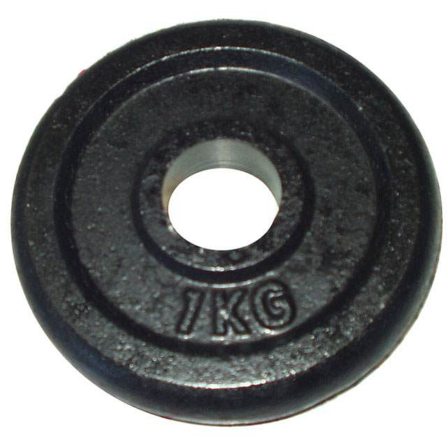Závaží k činkám 1 x 1 kg, s otvorem na osu o průměru 25mm. Vnější průměr kotouče je 11 cm, šíře závaží 1,5 cm.