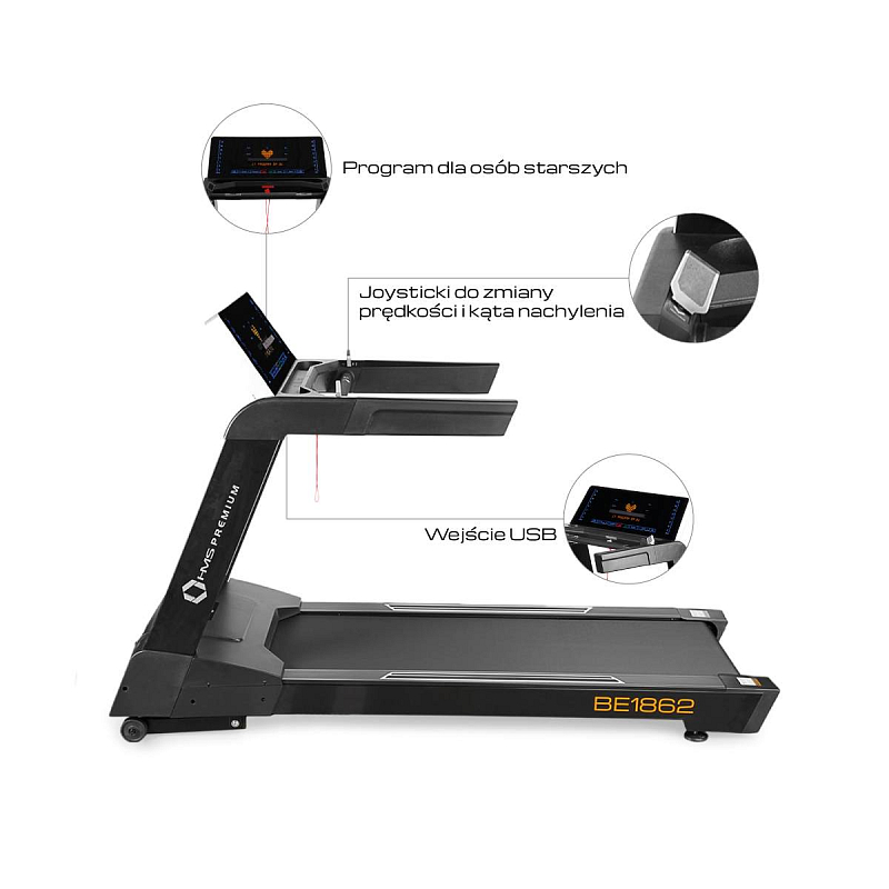 Trenažér HMS BE1862 je běžecký pás spadající do kategorie Semi-commercial a je tedy vhodný do domácností, soukromých klubů, hotelových posiloven atd.