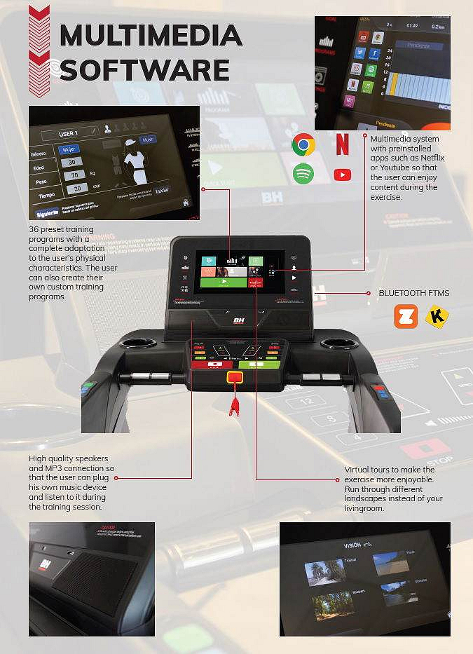 BH FITNESS RS900TFT je kvalitní běžecký pás pro celou rodinu, určený i pro náročnější domácí využití. Pás je vhodný pro využití přes 20 hodin týdně.