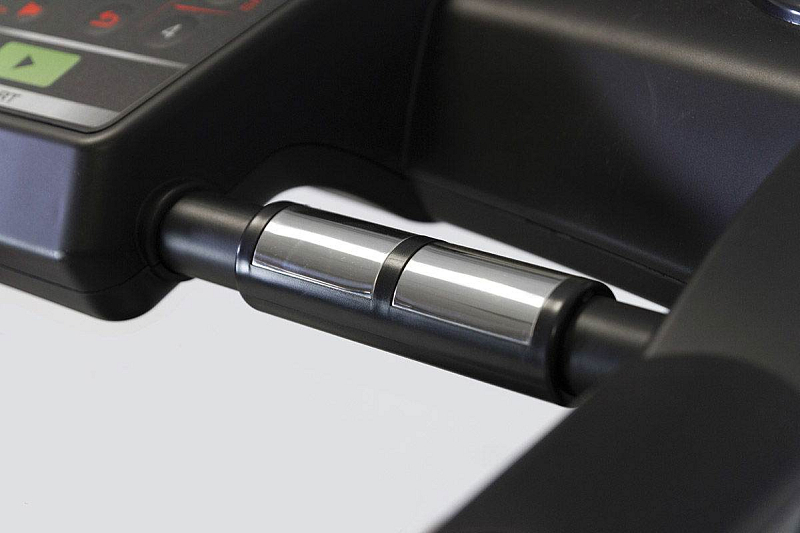 BH Fitness RS900TFT je vybaven stabilními madly, s integrovanými dlaňovými senzory pro měření tepové frekvence, v madlech jsou zabudovány i dotykové ovladače rychlosti a sklonu. ,