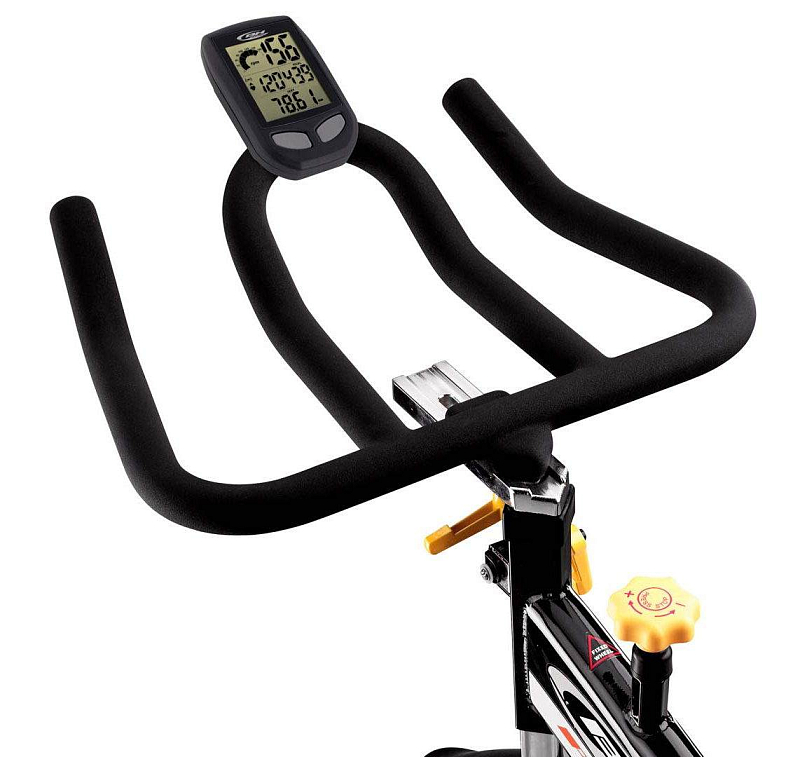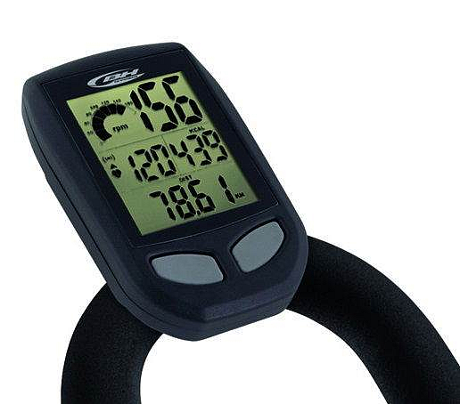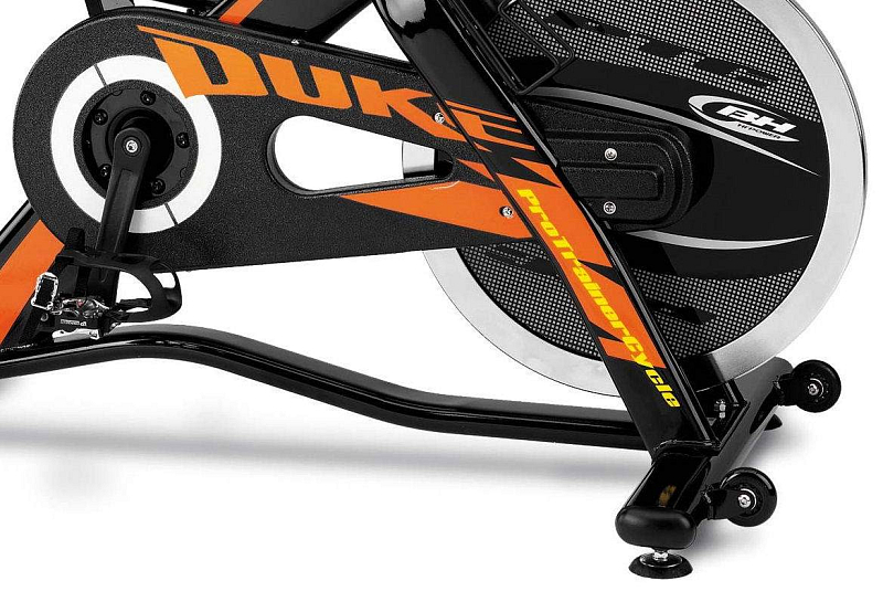 Cyklotrenažér BH Fitness Duke Electronic disponuje přehledným počítačem, transportními kolečky, vyrovnávači nerovnosti.