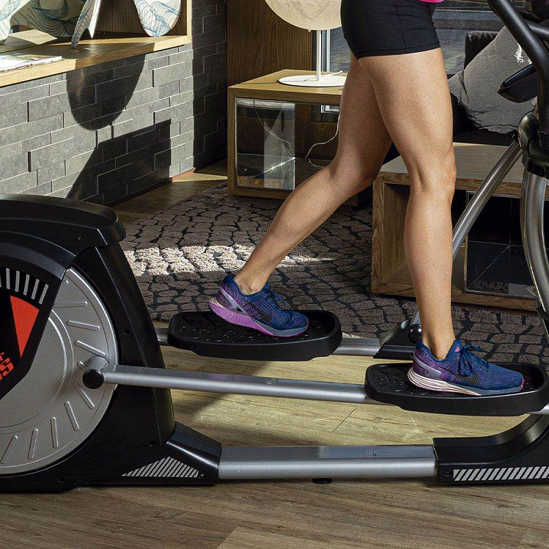 Plynulý a tichý chod zajišťuje systém setrvačníku o hmotnosti 35 kg. Odpor je vytvářen magnetickou brzdou s elektronickou regulací až v 24 úrovních. Délka kroku je univerzální 51 cm a rozteč pedálů je 11 cm.