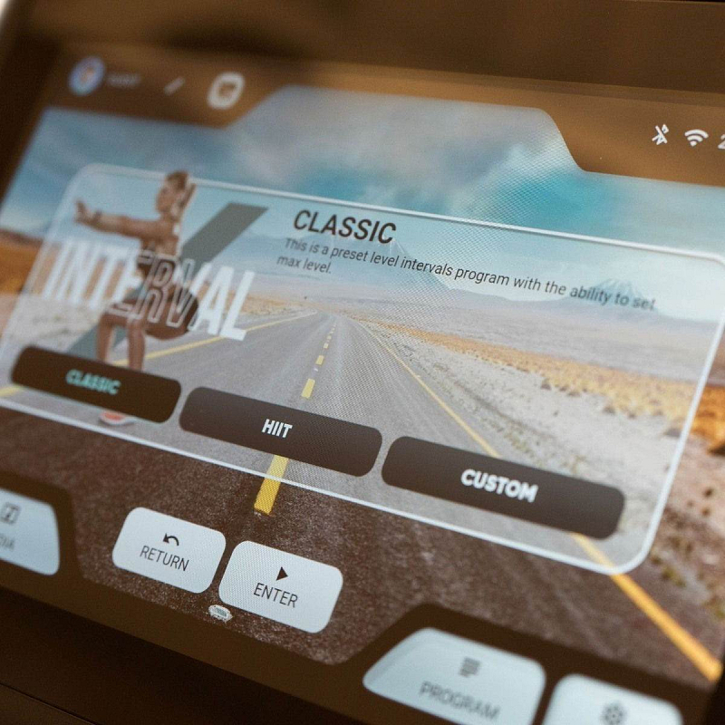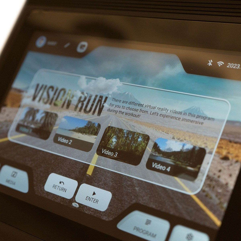 Součástí trenažéru je přehledný počítač s praktickým držákem na tablet/smartphone, transportní kolečka a vyrovnávače nerovnosti.