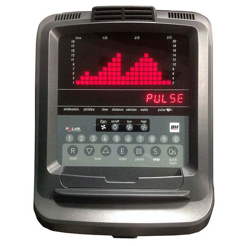 Eliptický trenažér BH Fitness TFC MED disponuje přehledným počítačem s LED + DOT Matrix displejem, integrovaným ventilátorem pro osvěžení při tréninku, senzory po měření tepové frekvence, transportními kolečky, vyrovnávači nerovnosti a držákem na lahev.