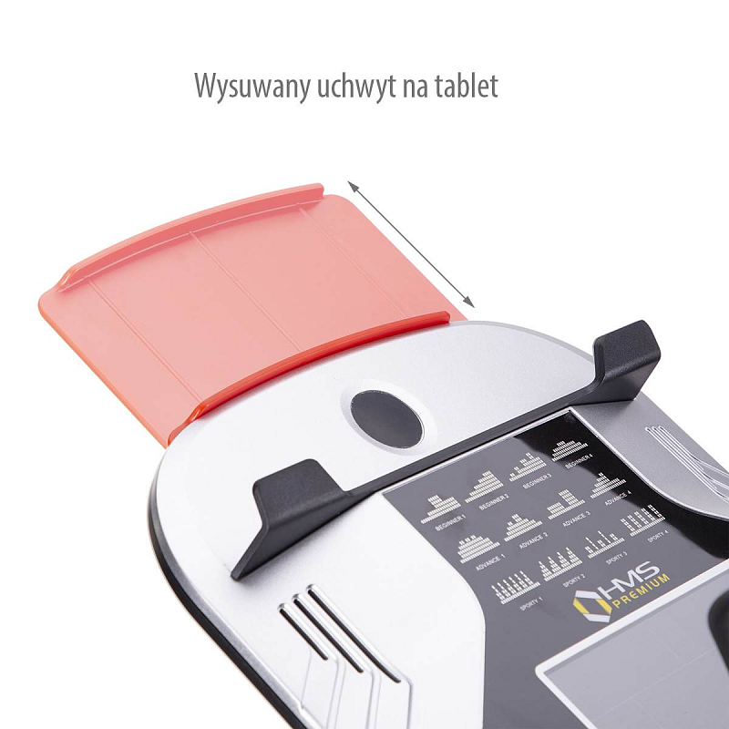 Eliptický trenažér HMS Premium H1802 je určen pro intenzicní trénink ať už v doma, nebo například v klubové posilovně, nebo v hotelovém fitnessu. Největší předností modelu je stabilní konstrukce a 9-ti kilogramové zátěžové kolo v kombinaci s tichou, magnetickou brzdou. Zátěž modelu H1802 generuje automaticky ovládaná, magnetická brzda, která se podle průběhu zvoleného programu vzdaluje, nebo přibližuje k zátěžovému kolu. Systém s magnetickou brzdou je bezúdržbový, tichý a umožňuje přesné přizpůsobení zátěže aktuálním potřebám, nebo požadavkům. Trenažér H1802 je vybaven moderním počítačem s přehledným LCD displejem, který zobrazuje všechny údaje na jednom panelu bez potřeby jejich přepínání. Jednotlivá pole zobrazují čas, tepovou frekvenci, rychlost / počet otáček, vzdálenost, spálené kalorie, výkon / zátěž. Matice zobrazuje průběh aktuálně zvoleného programu. Počítač je dále vybaven rozhraním pro komunikaci s mobilním zařízením iOS nebo Android, kdy po nainstalování aplikace iCnsole+ můžete trenažér rozšířit o virtuální "kokpit", který Vám umožní mít dokonalý přehled o tréninku a nebo můžete sledovat například oblíbený seriál. Zvuk přitom bude přehráván přes vestavěné reproduktory. Počítač je osazen USB portem pro dobíjení zařízení. Na klávesnici se nachází 7 tlačítek. Na…