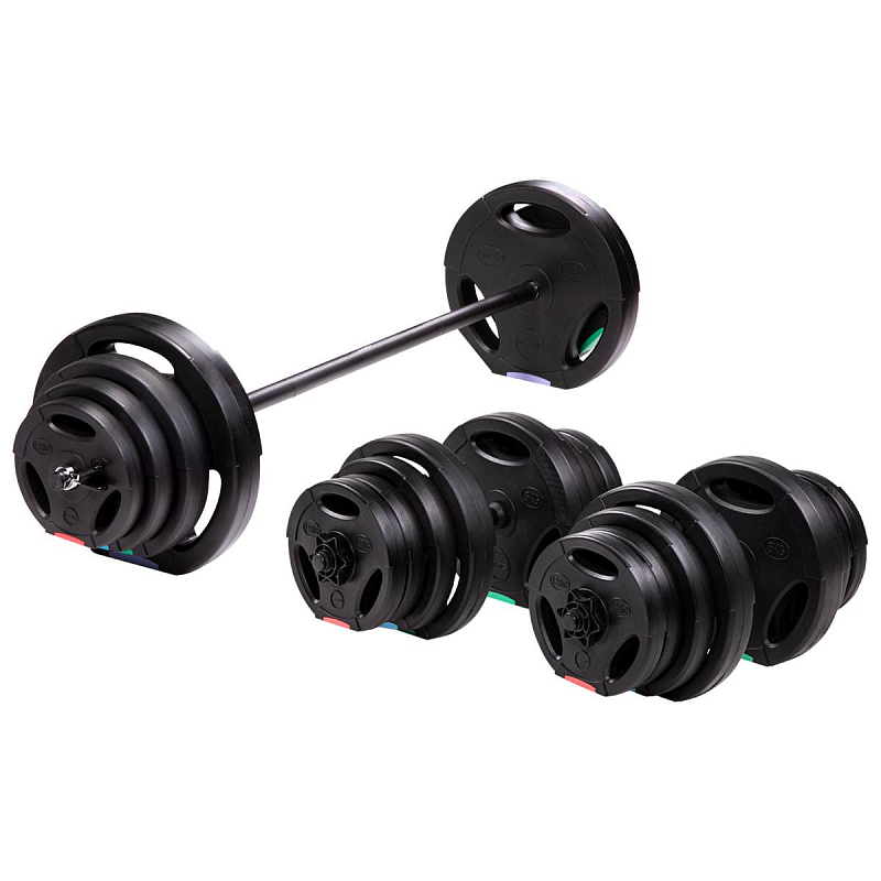 Kompletní nakládací sada dvou jednoručních a jedné obouruční činky o celkové hmotnosti 62 kilogramů, to je HMS SGSP60. Nakládací činky patří ke klasickému vybavení každé domácí posilovny.