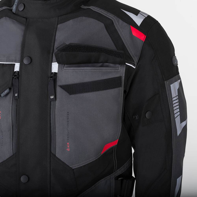CE protektory na kritických místech, reflexní prvky, 600D polyester, odnímatelná vnitřní klimatická membrána, nepromokavé zipy, elastické panely, perfektně sedí, spousta kapes.