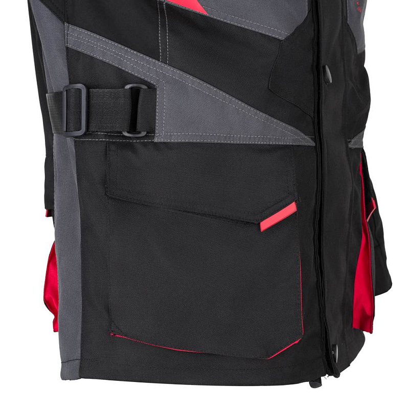 Díky stahovacím popruhům na rukou a v pase lze velikost upravit přesně podle Vaší anatomie těla. Bunda perfektně sedí a navíc umožňuje spojení s moto kalhotami.