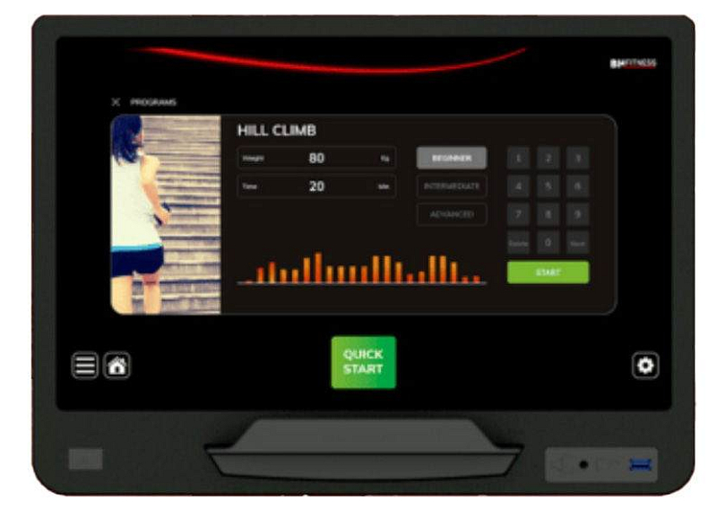Přehledný počítač s 19" displejem SmartFocus je vybaven bohatou programovou nabídkou a poskytuje všechny potřebné informace v průběhu tréninku. Dále disponuje senzory pro měření tepové frekvence, tlačítky pro rychlé nastavení tréninkových dat, držákem na lahev, transportními kolečky a vyrovnávači nerovnosti.