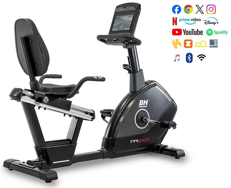 Součástí rotopedu BH FITNESS TFR Ergo Multimedia je 10" dotykový počítač se zabudovanými aplikacemi, s držákem na tablet/smartphone, senzory pro měření tepové frekvence, vyrovnávače nerovnosti, transportní kolečka a držák na lahev. Počítač navíc díky technologii i.Concept 3.0 FTMS komunikuje s nejmodernějšími tréninkovými aplikacemi.