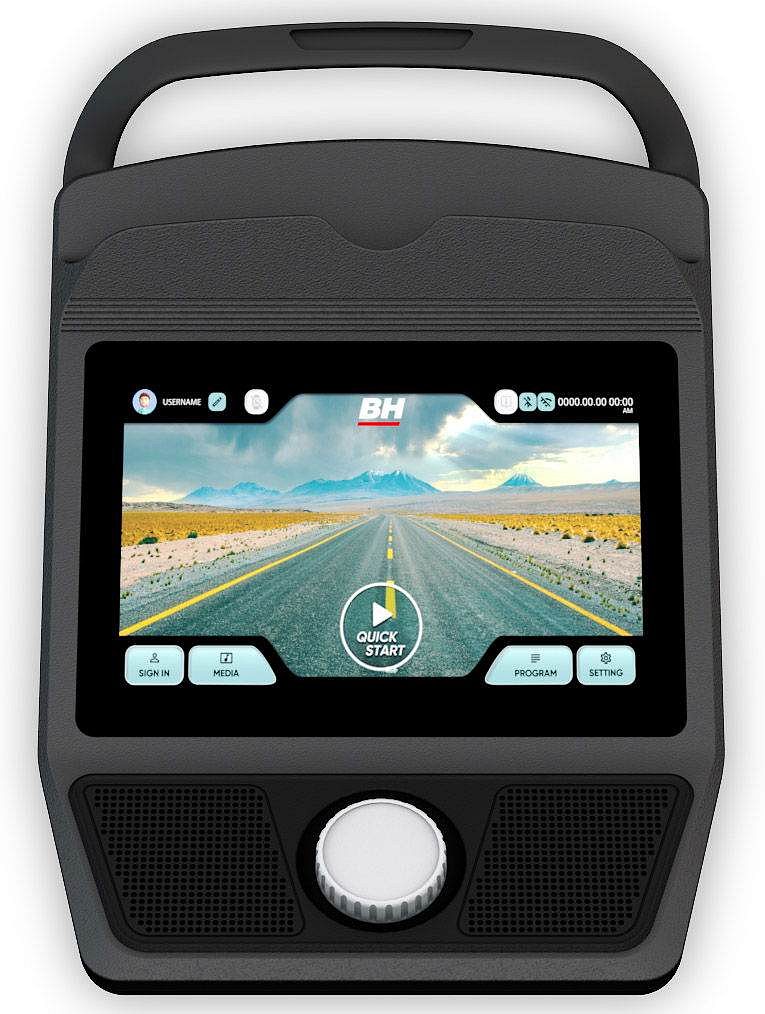 Součástí rotopedu BH FITNESS Carbon Bike RS Multimedia je 10" dotykový počítač se zabudovanými aplikacemi, s držákem na tablet/smartphone, senzory pro měření tepové frekvence, vyrovnávače nerovnosti, transportní kolečka a držák na lahev. Počítač navíc díky technologii i.Concept 3.0 FTMS komunikuje s nejmodernějšími tréninkovými aplikacemi.