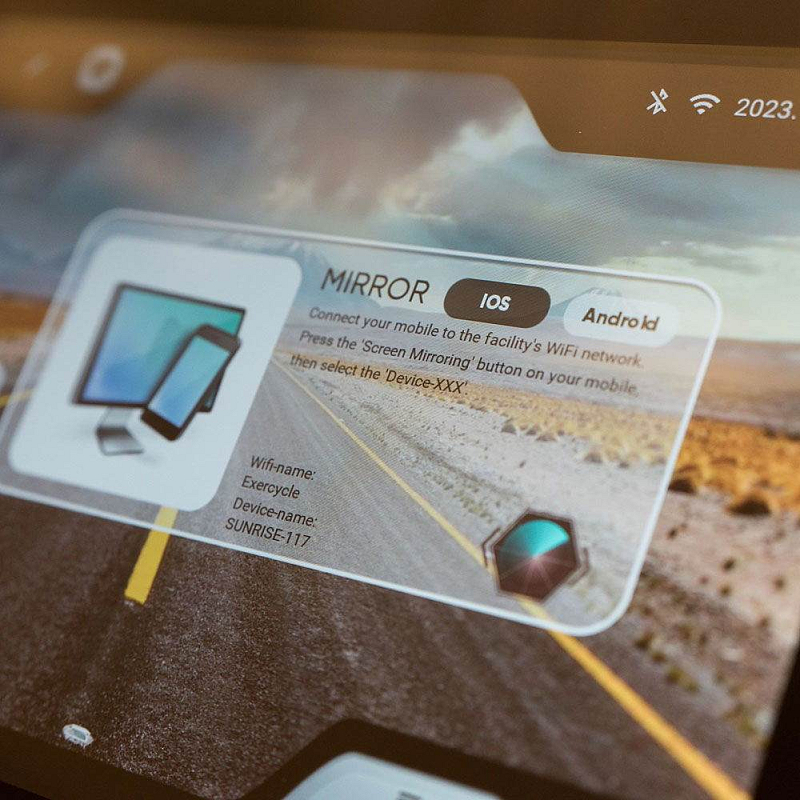 - Systém konektivity s protokolem FTMS v počítači rotopedu - komunikuje s aplikacemi jako Kinomap, Zwift, BKOOL, MyHomeFIT