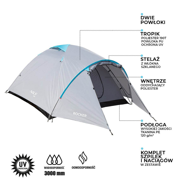 NILS Camp NC6013 Rocker je 3 osobový stan, který oceníte během teplých letních nocí na zahradě a nebo při pobytu v kempu. Stan Rocker je dvouplášťový a skládá se z prostorné předsíňky a jedné ložnice.