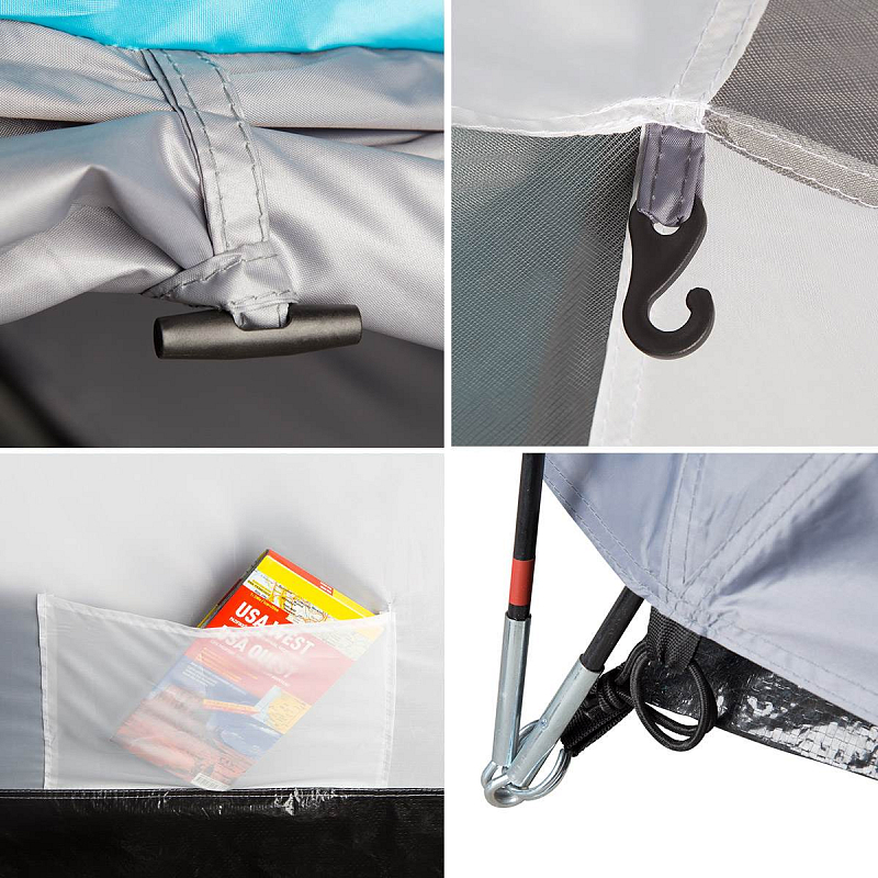 Rocker lze rychle postavit za pomocí tří skládacích, sklolaminátových tyčí. Stan je dodáván v praktické tašce, kde kromě tropika, vnitřního stanu a tyčí naleznete také napínací šňůry a kolíky.