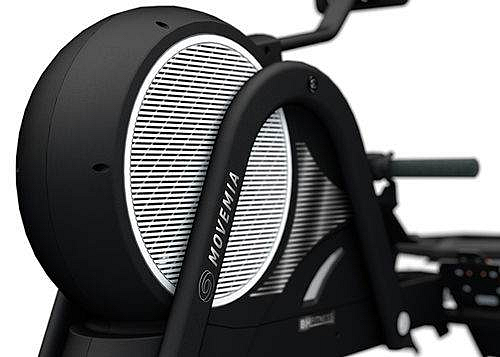 Trenažér BH Fitness Movemia RW1000 je dále vybaven přehledným počítačem s přednastavenými programy, transportními kolečky a vyrovnávači nerovnosti.